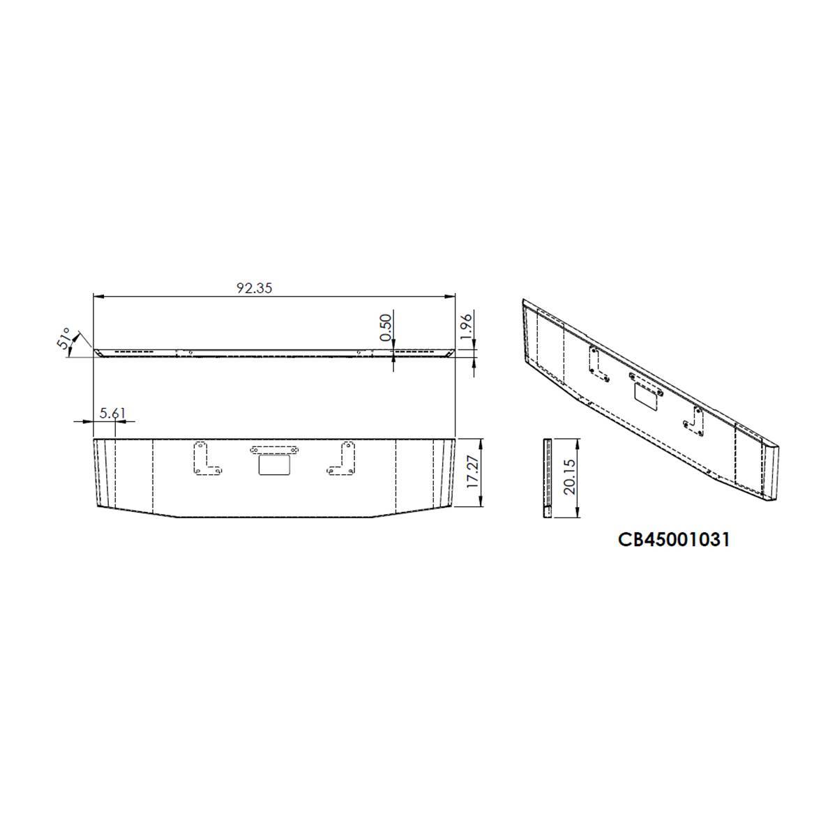 PETERBILT 379 TAPERED CHROME BUMPER 20"